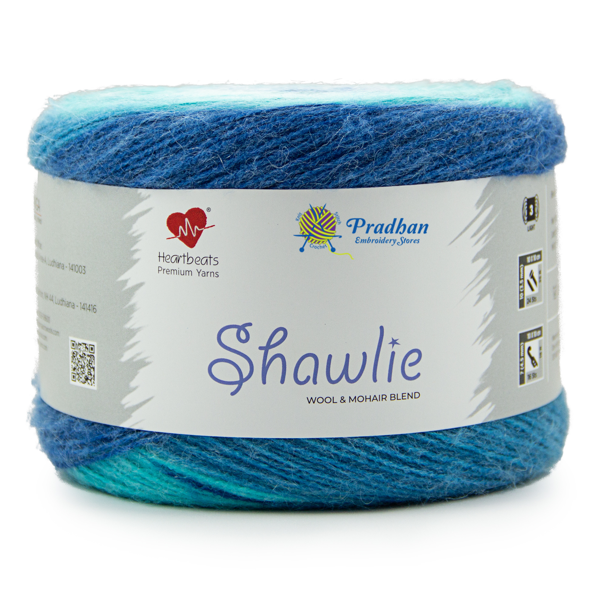 Heart Beats Shawlie is a premium tri blend of Mohair, Wool & Acrylic. Shawlie can be used for both Knitting and Crochet, for a variety of projects from wearables and home decor. Yardage approx. 810mtrs per 150gm ball. Needle size UK 10(3.5mm), Crochet size UK 7(4.5mm)