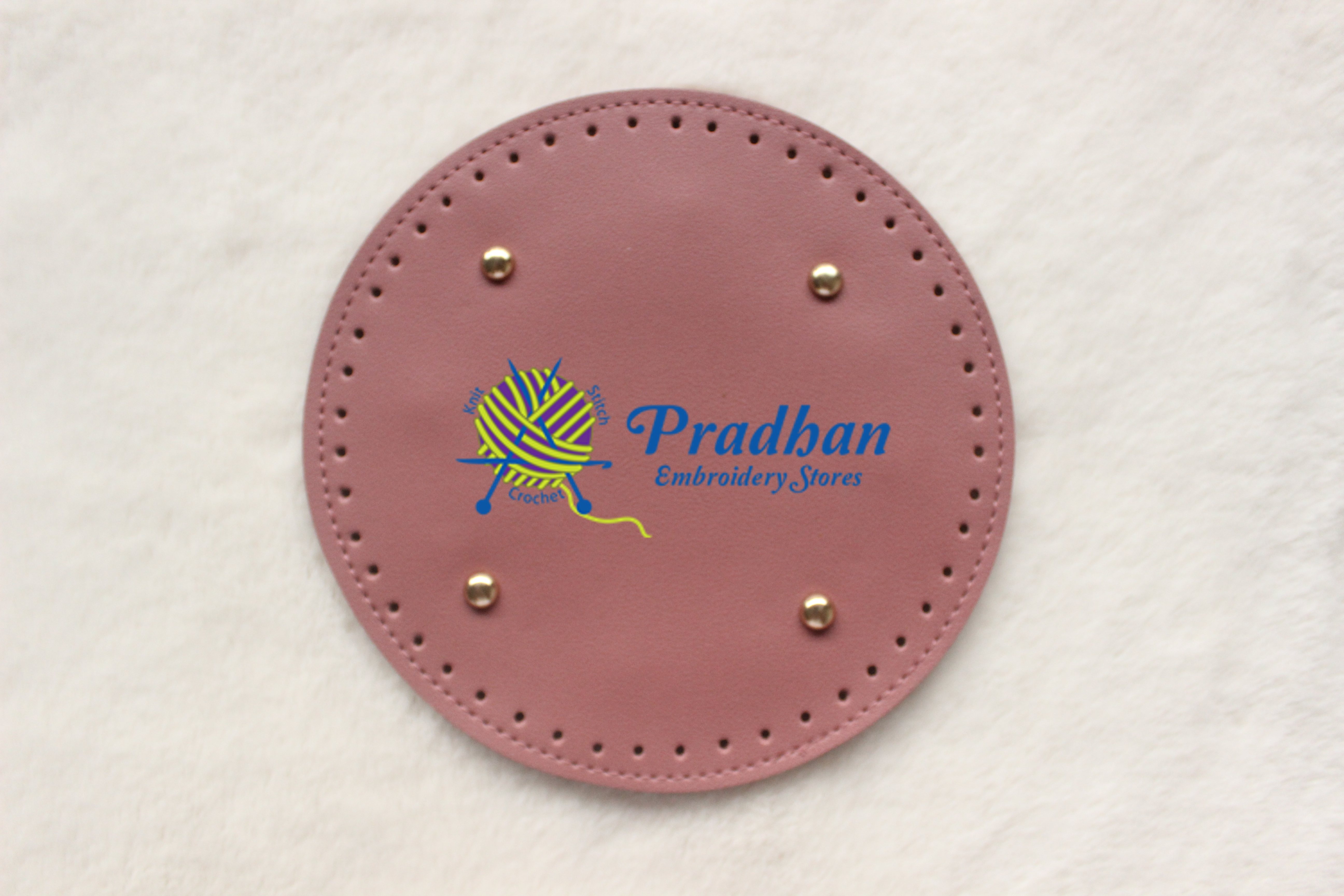 Faux Leather (Rexine) bag bases, suitable to sew onto a bag project or fine crocheting through the holes. Fitted with 4 golden rivets to provide a little rise from ground level.