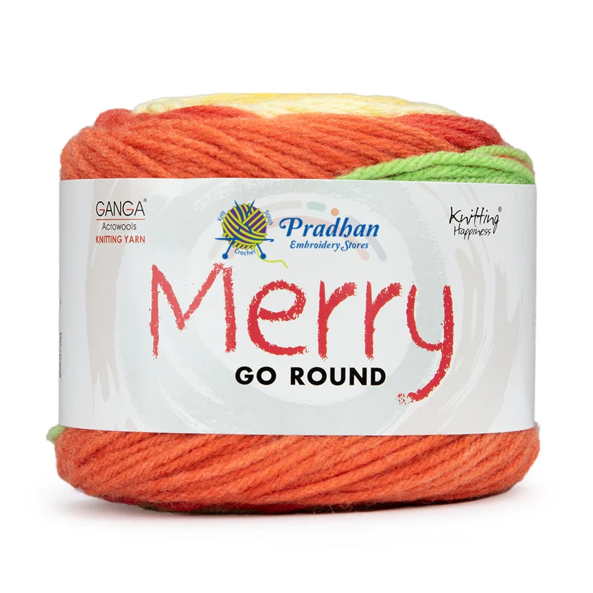 Ganga Merry Go Round is a colorful cake yarn, which has variegated and Self Striping effect.