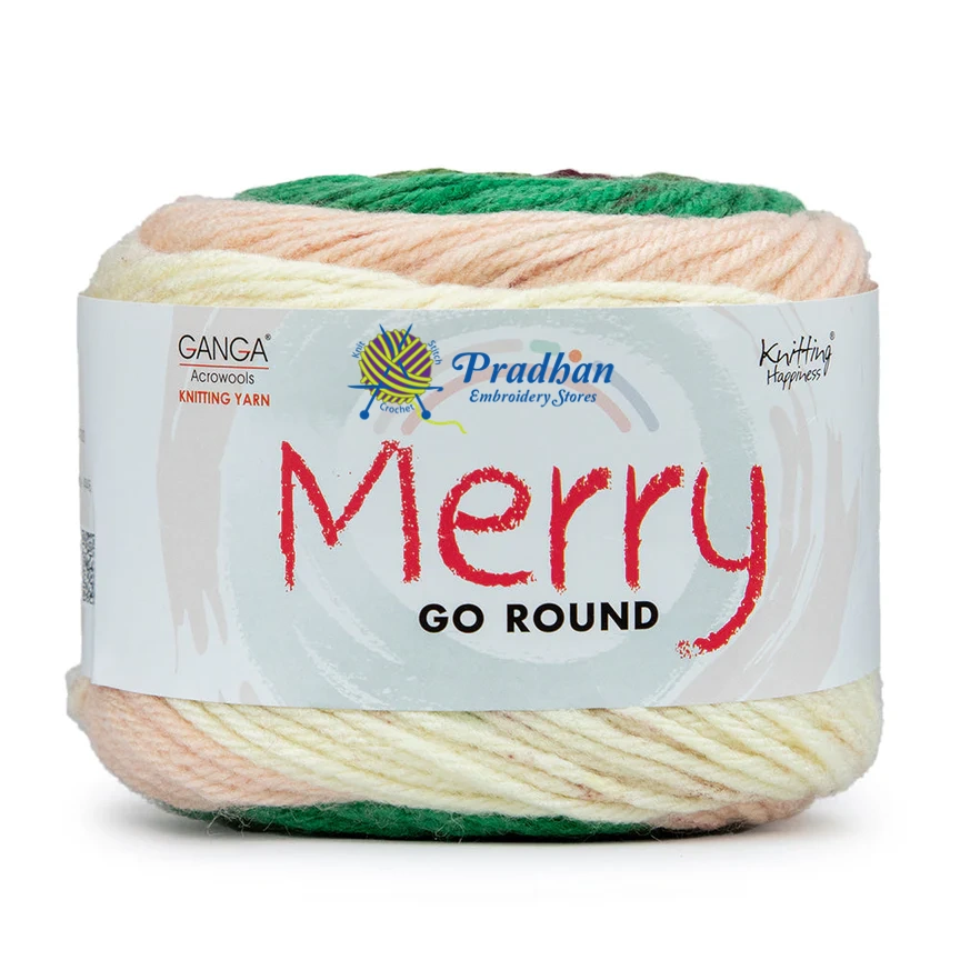 Ganga Merry Go Round is a colorful cake yarn, which has variegated and Self Striping effect.